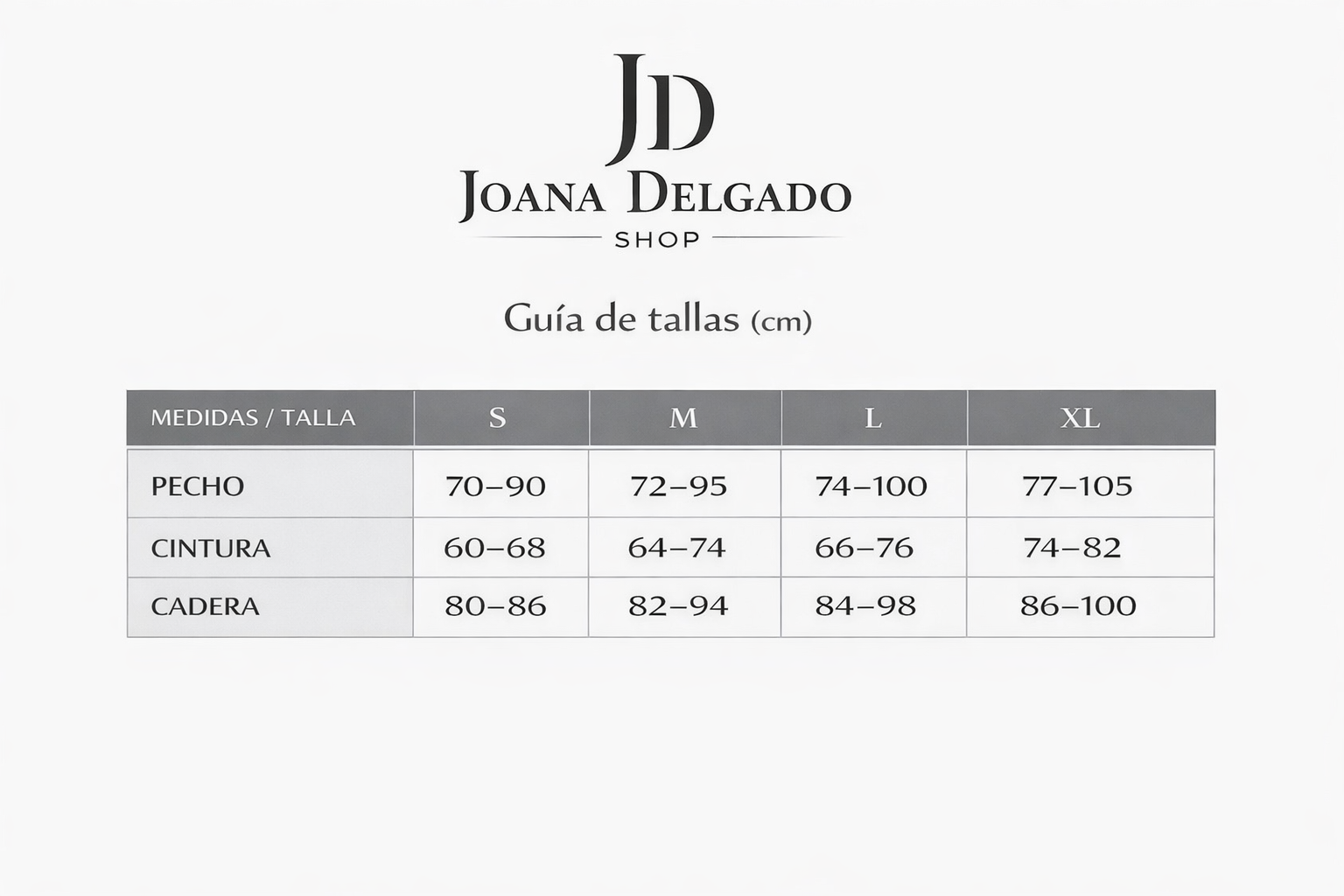 Pecho 95 cm. Cintura 72cm. Cadera 92 cm. Altura 1,60 m.